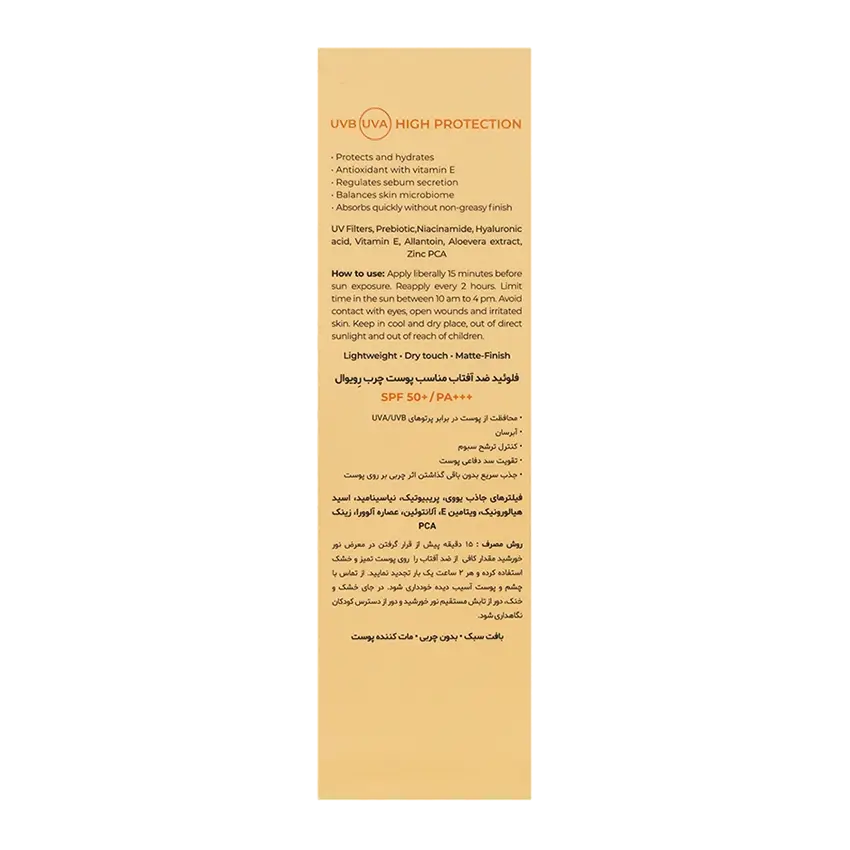 ویژگی های فلوئید ضد آفتاب پروبیوتیک SPF50 رویوال: